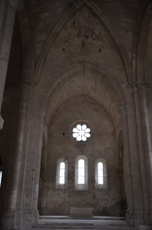 No matter how similar in style and structure the various abbeys and churches from the middle ages, they all have a different ambiance. Silvacane Abbey, near La Rocque-d'Antheron, is no longer a religious establishment, but it retains a sombre and peaceful atmosphere. In fact, I found it more restful than the Abbe Senanque because it was not swamped by tourists and there were no guides. I was able to take it at my own pace and just soaked in the simplicity and harmony that was inherent in the architecture of the Cistercians. You can see for yourself below.